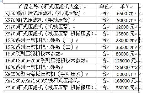 廂式壓濾機價格表